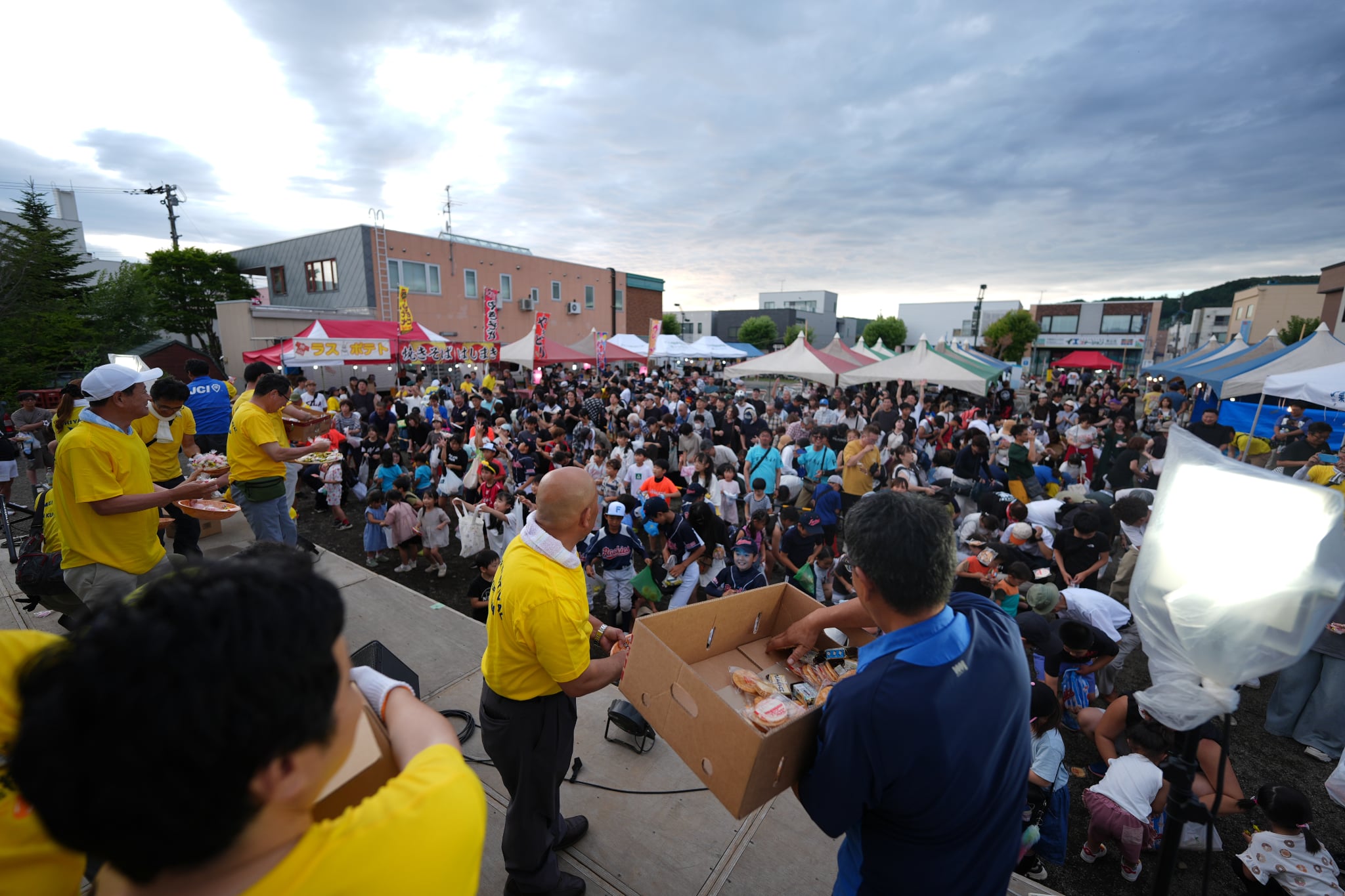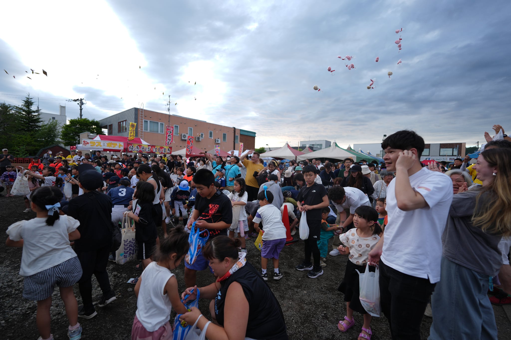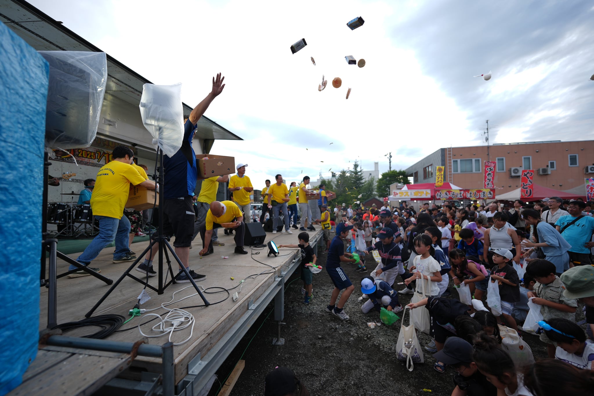 本年の夏まつりでは、駅前通りを中心に、多彩な懐かしい催しが繰り広げられました。初日の夜には、夜空を鮮やかに彩る打ち上げ花火がまつりの開幕を華やかに飾り、多くの歓声と拍手に包まれました。また、地域の伝統を受け継ぐ「郷土芸能かさおどりパレード」、勇壮な「豊年千俵引き競争」、迫力ある「YOSAKOIソーラン」演舞、さらにはSIT Bandや川上雄大さん・彩川さくらさんによる音楽ステージなど、年代を問わず楽しめる多彩なプログラムを通じて、栗山町の文化と魅力を広く発信することができました。